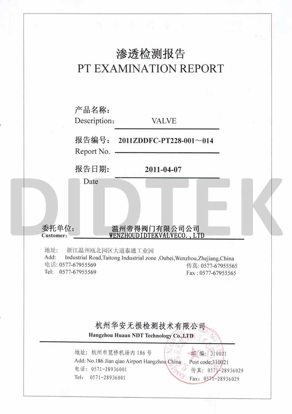 Didtek Valve Group Co., Ltd Dirección: No.1 Puyi Road, Outubei Town, Condado de Yongjia, Zhejiang, Prchina.